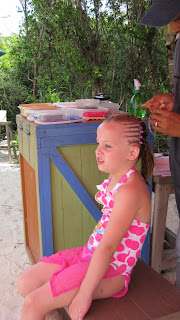 The girls really wanted their hair braided with corn rows. It was a bit painful and they didn't know what they were getting into.